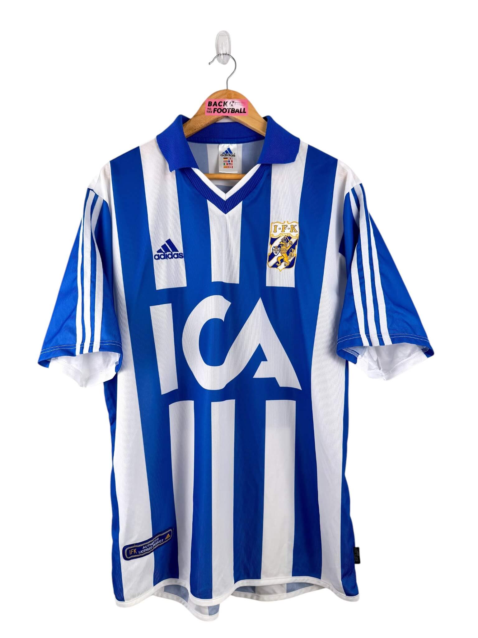 Le maillot : maillot vintage domicile IFK Göteborg 2001. L’écusson et le logo Adidas sont brodés, le sponsor ICA est incruté. Très beau maillot rétro du IFK Göteborg !