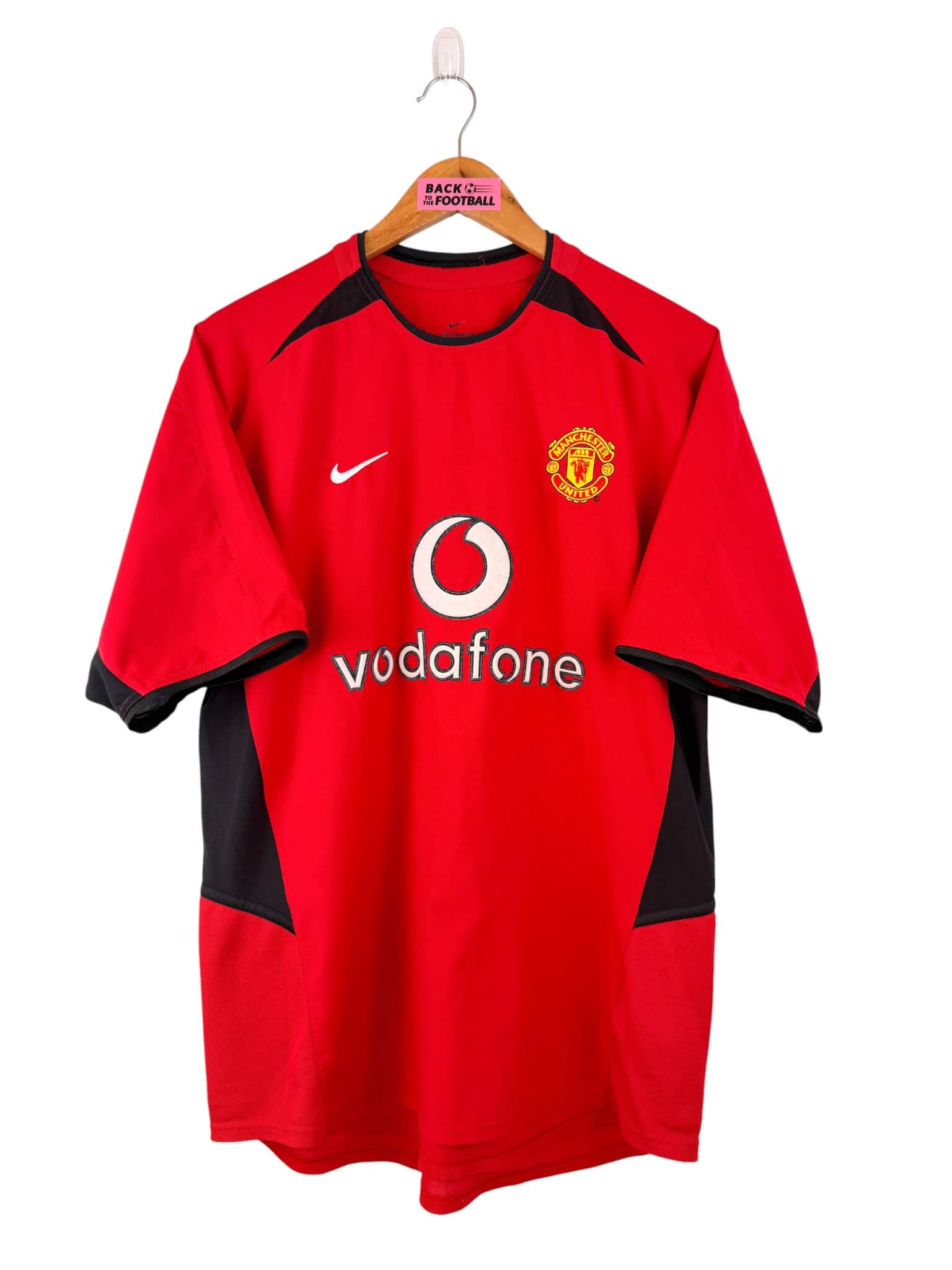 Le maillot : maillot vintage domicile de Manchester United 2002/2004 floqué Beckham #7. L’écusson et le logo Nike sont brodés, le sponsor Vodafone est en feutrine. Beckham #7 au dos est aussi en feutrine. Très beau maillot rétro de Man United !