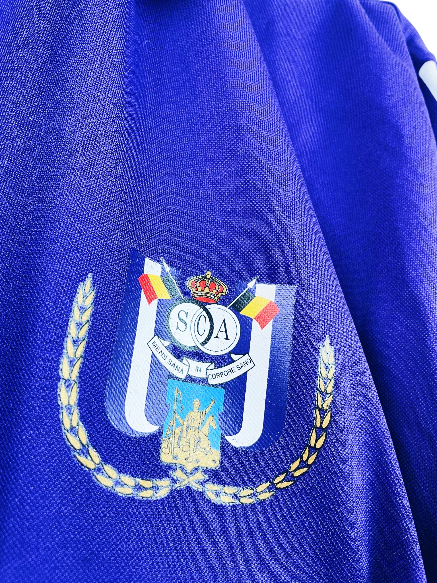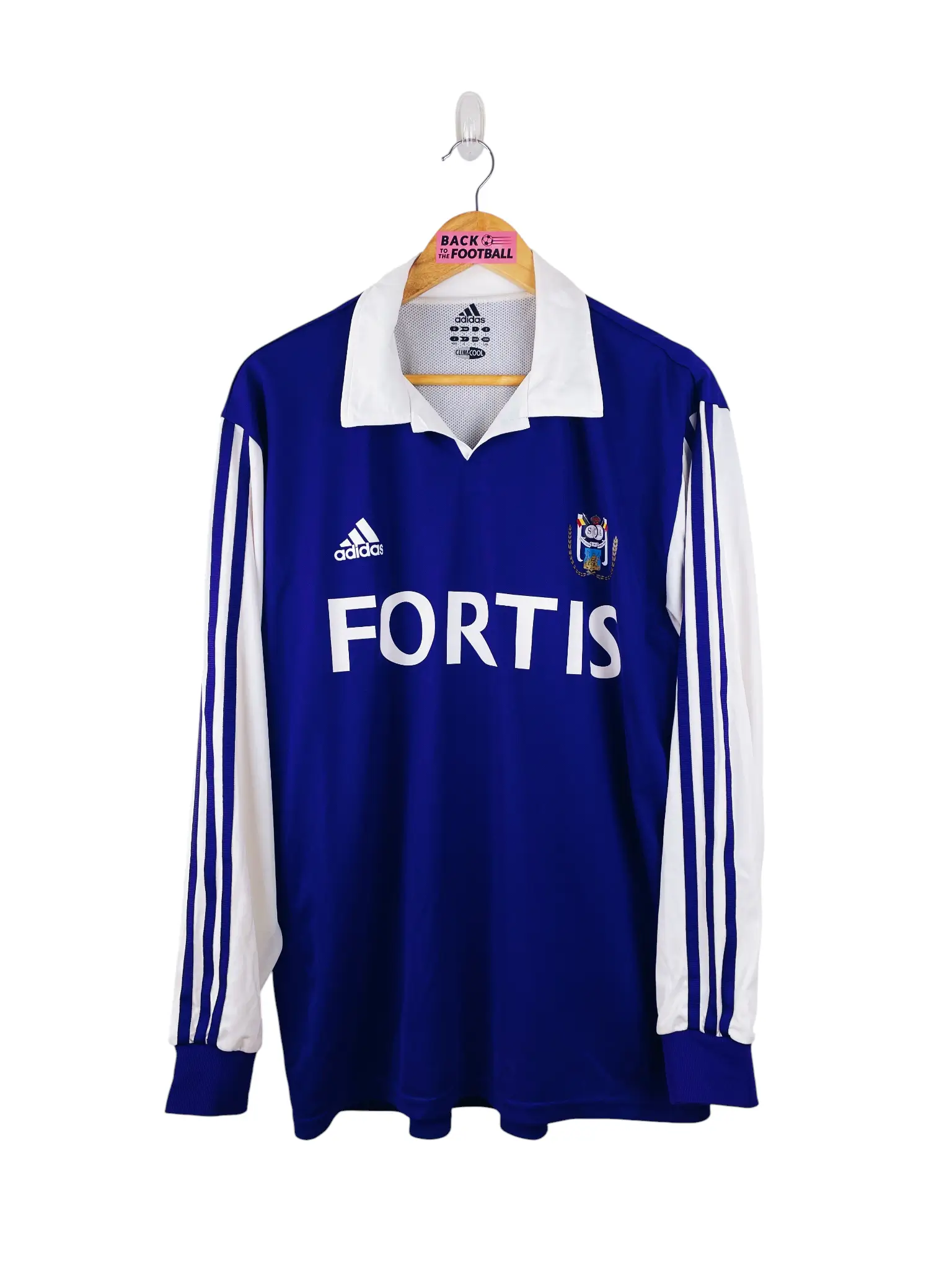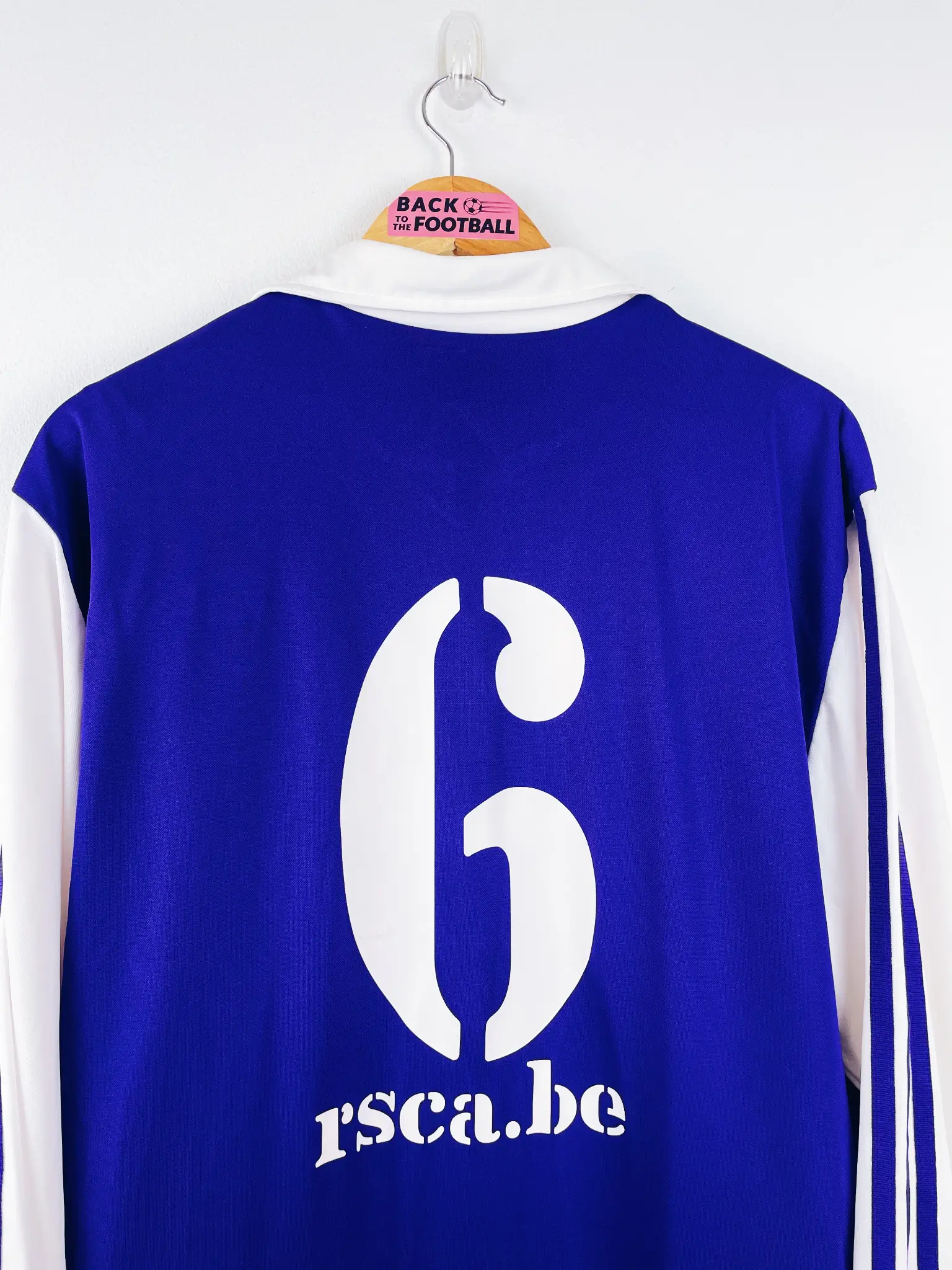 Le maillot : maillot vintage extérieur Anderlecht 2003/2004 stock pro (player issue) : manches longues, numéro 6 floqué au dos, taille floqué dans le col, logo Adidas et écusson floqués, double couche à l’intérieur. Très beau maillot rétro d’Anderlecht !