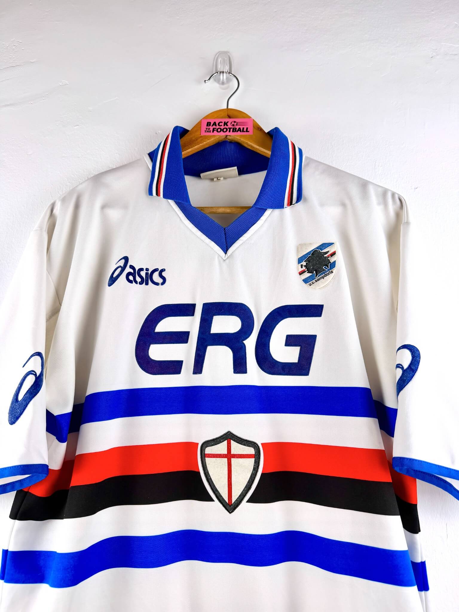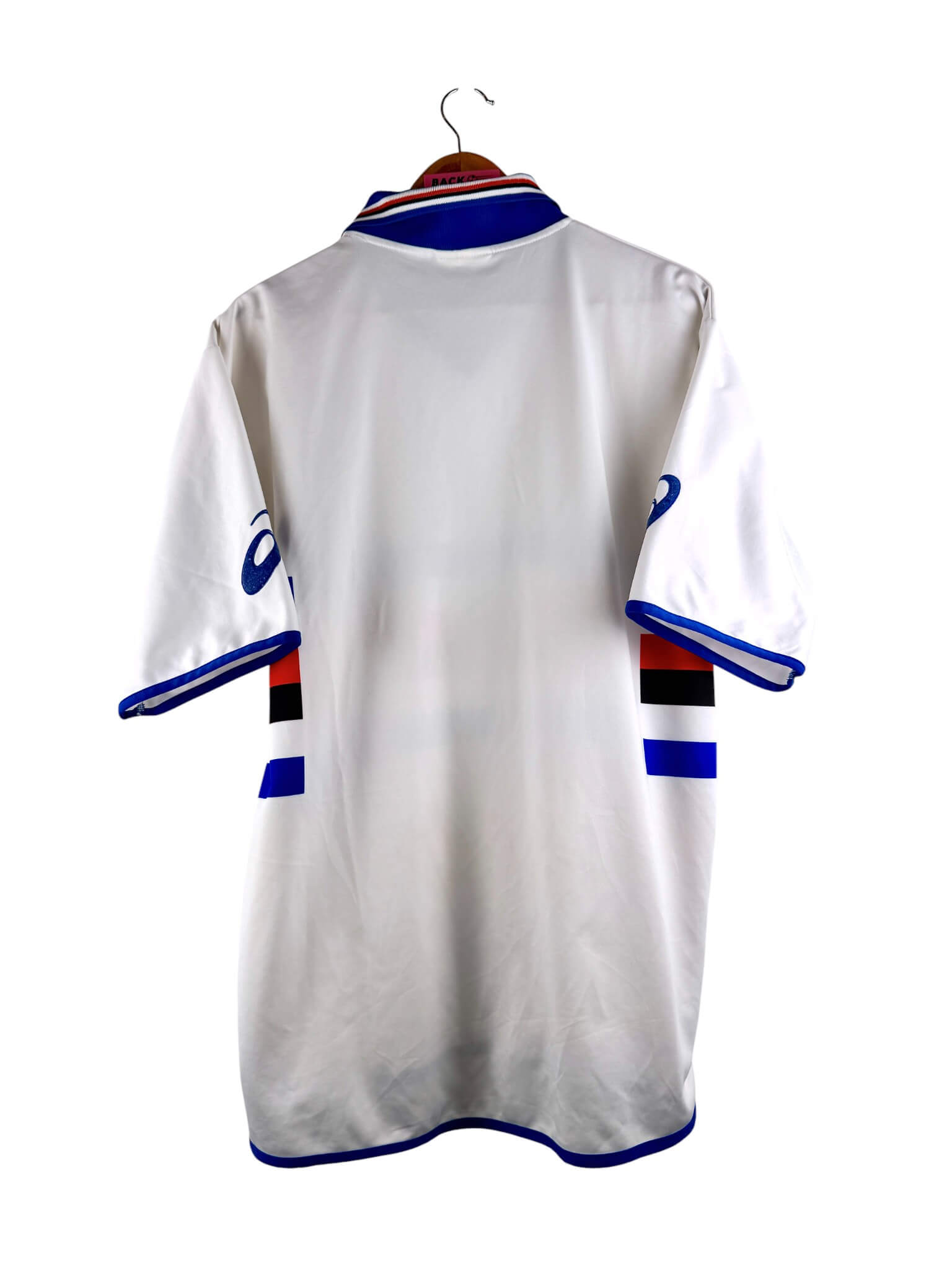 Un maillot vintage de la Sampdoria, ça te tente? Back To The Football t’a sélectionné la crème de la crème des maillots rétros de la Sampdoria. Chaque maillot de la Sampdoria est unique et authentique. Qui dit maillot d’époque dit stock limité, premier arrivé, premier servi !