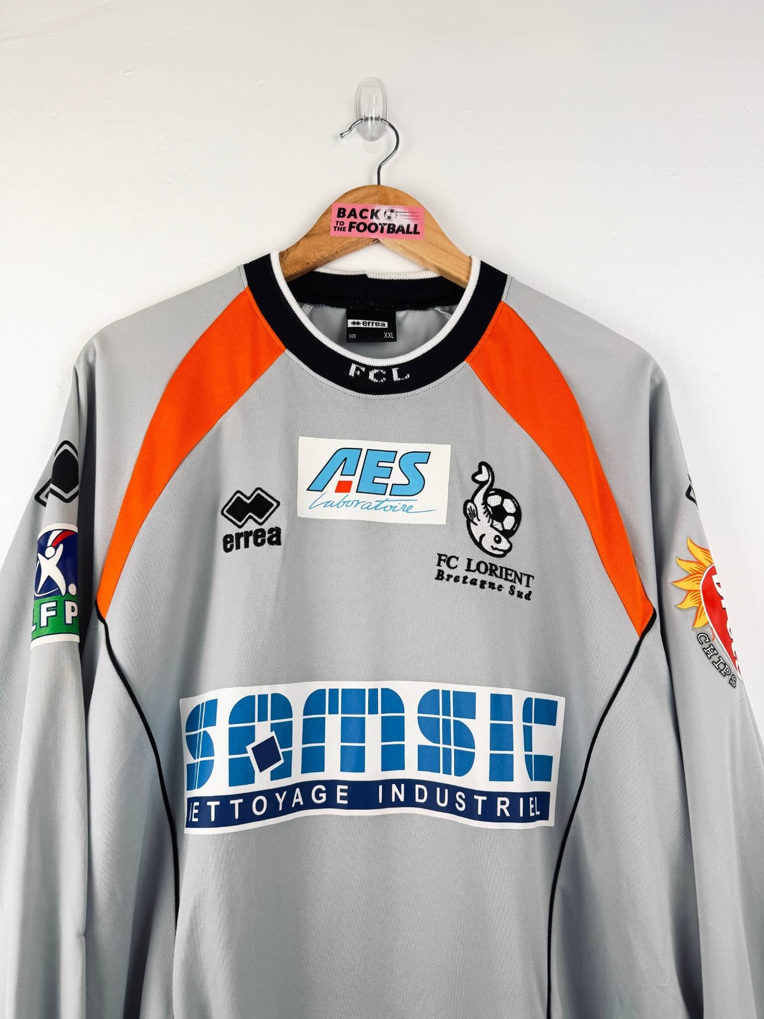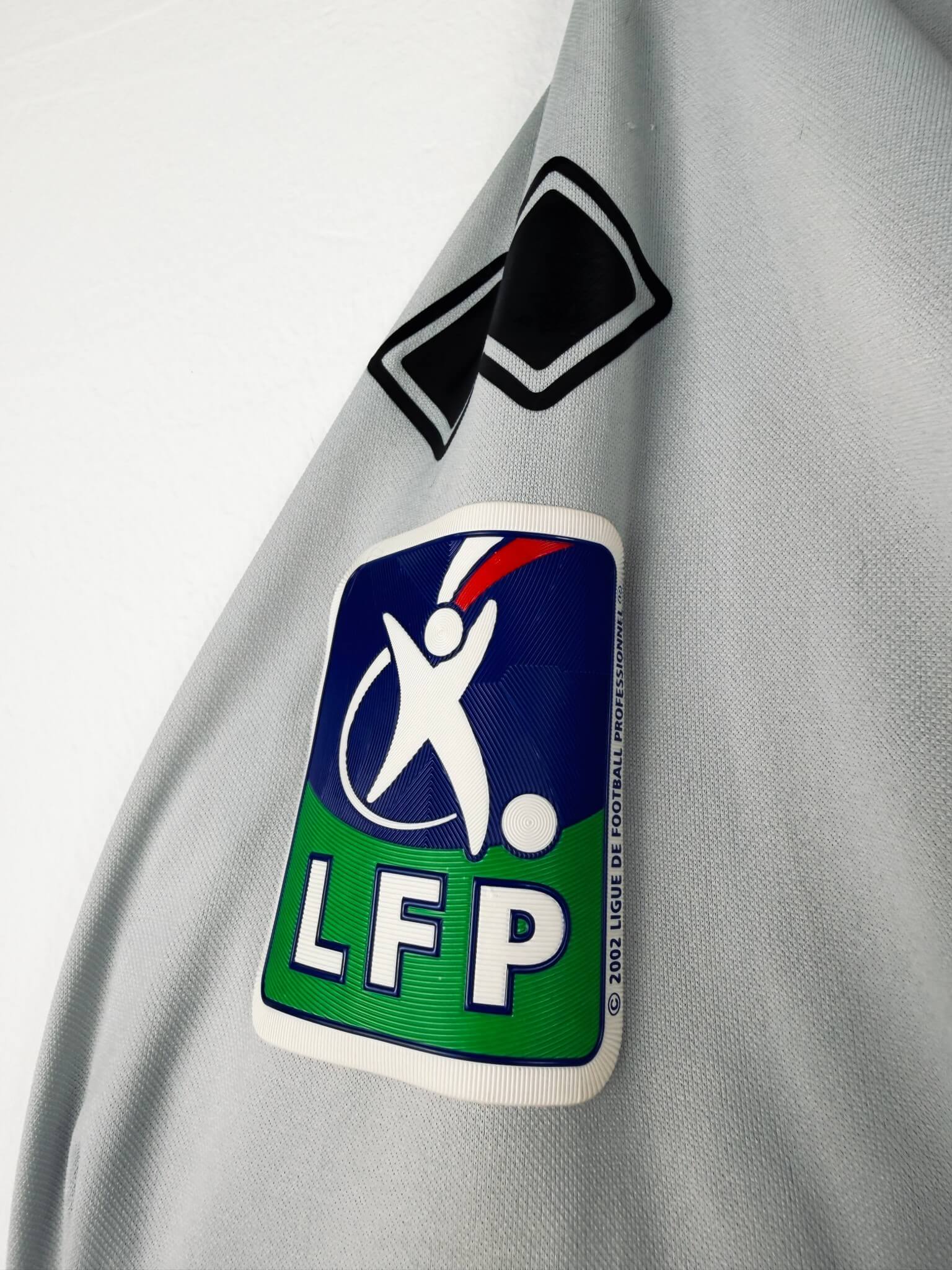 Le maillot : maillot vintage third de Lorient 2003/2004 porté (match worn) par Bedrossian #10 : manches longues, patch LFP, full sponsors. L’écusson et le logo Errea sont brodés, les sponsors sont floqués. Joli maillot rétro de Lorient !