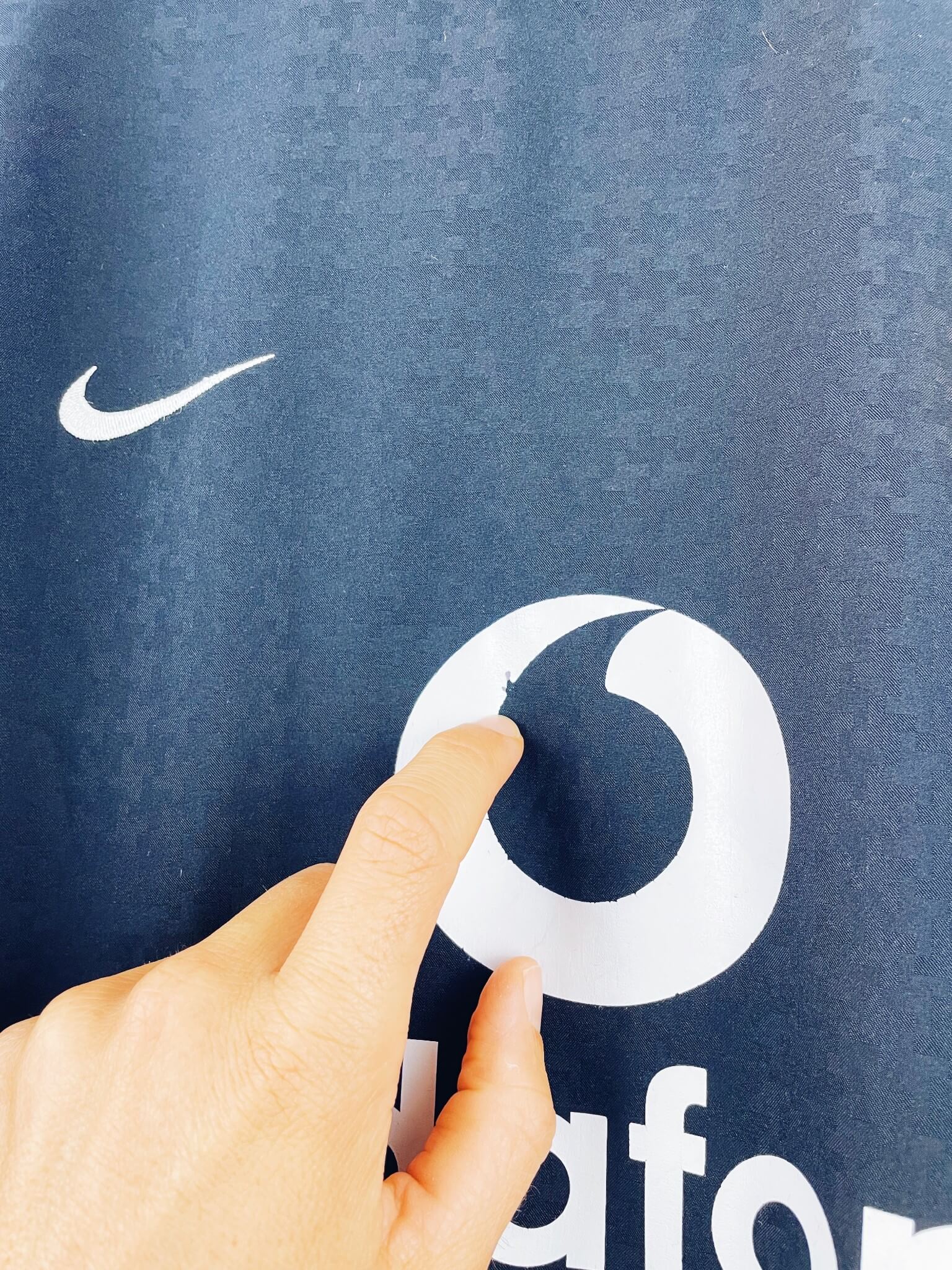 Le maillot : maillot vintage extérieur Manchester United 2003/2005. L’écusson et le logo Nike sont brodés, le sponsor Vodafone est floqué. Joli maillot rétro de Man United !