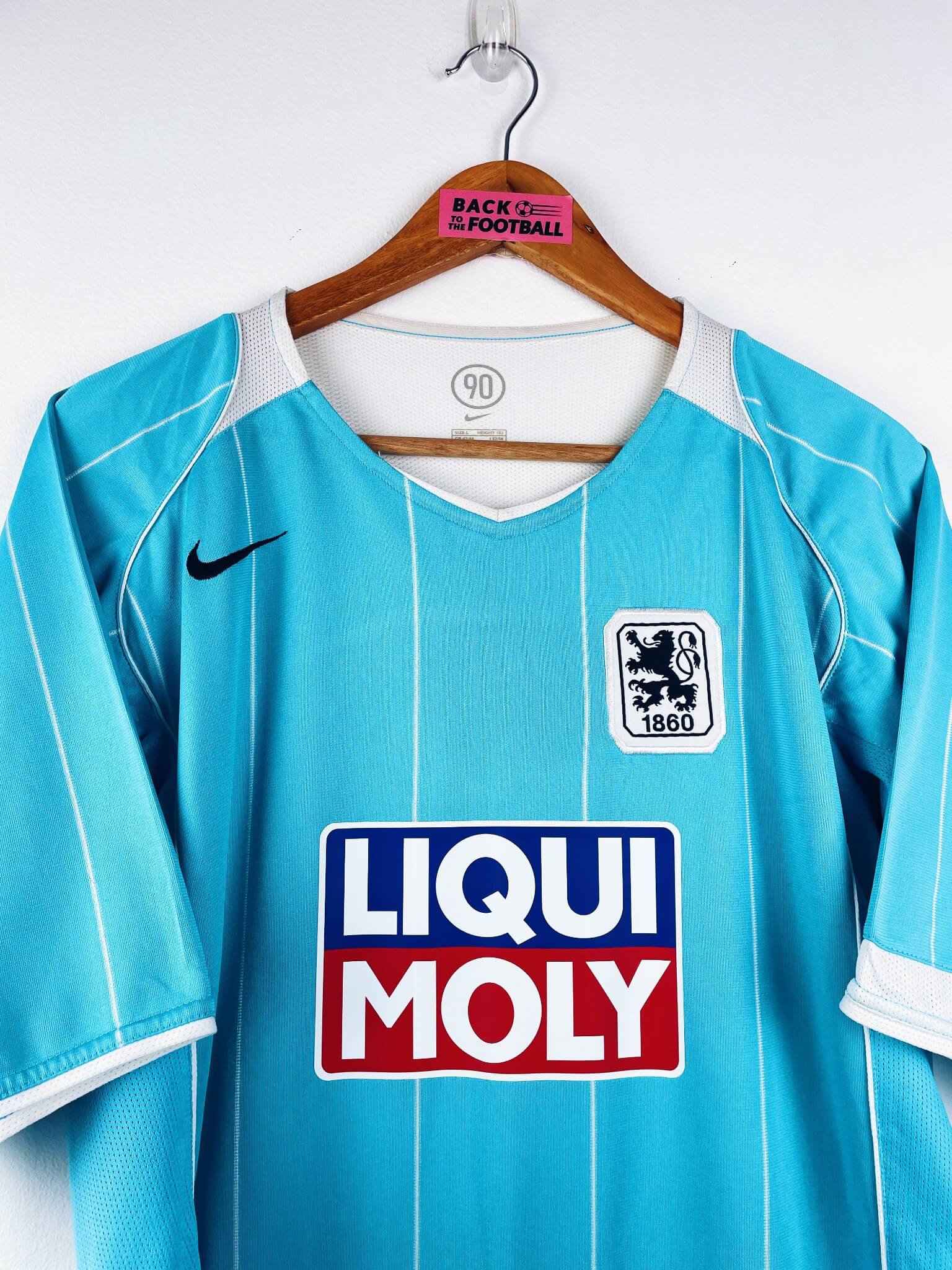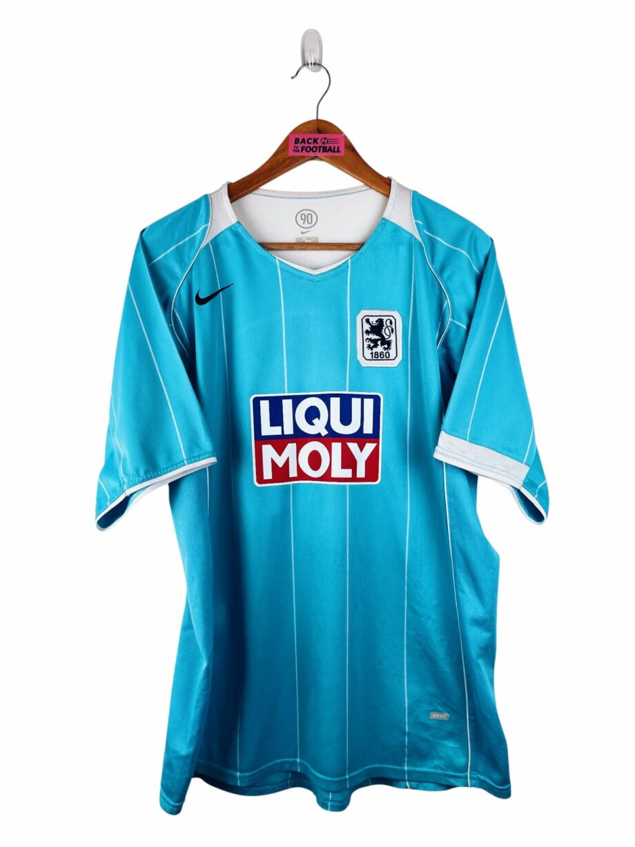 Le maillot : maillot vintage domicile Munich 1860 2004/2005. L’écusson et le logo Nike sont brodés, le sponsor Liqui Moly est floqué. Très beau maillot rétro du TSV 1860 Munich !