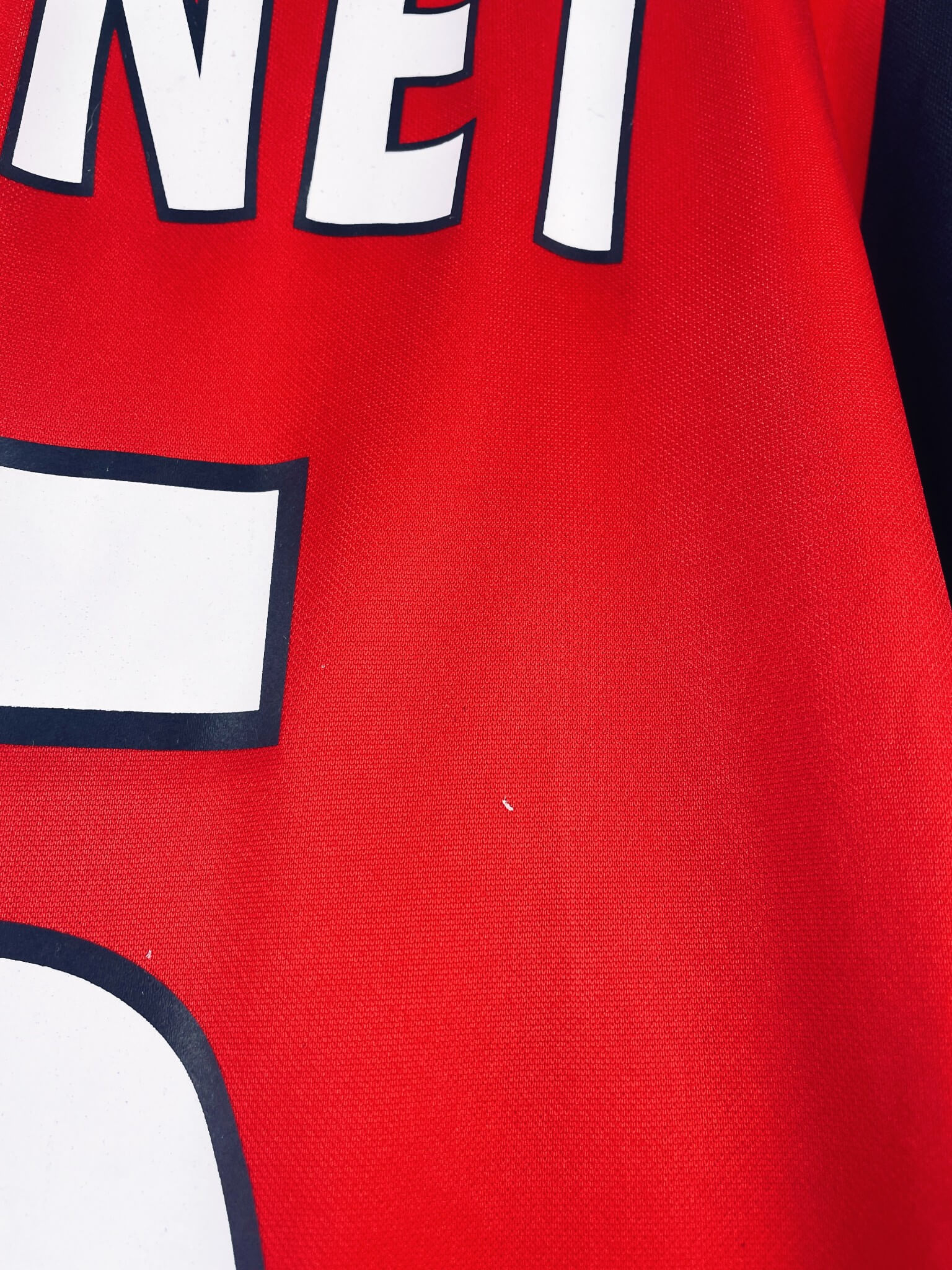 Le maillot : maillot vintage domicile OGC Nice 2004/2005 porté (match worn) par Grenet #5 : sponsors additionnels, patch LFP et flocage officiels. L’écusson et le logo Puma sont brodés, les sponsors et Grenet #5 sont floqués, le patch LFP est thermocollé. Maillot récupéré via la collection du joueur. Très beau maillot rétro de Nice !