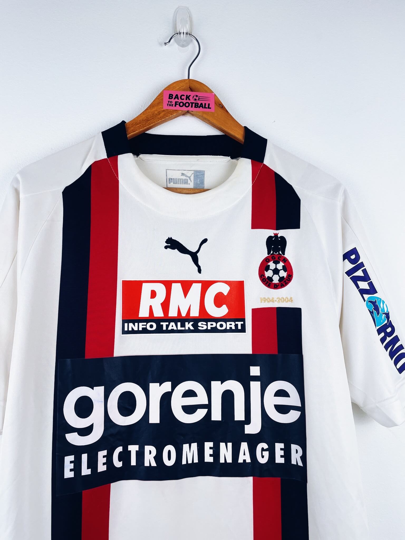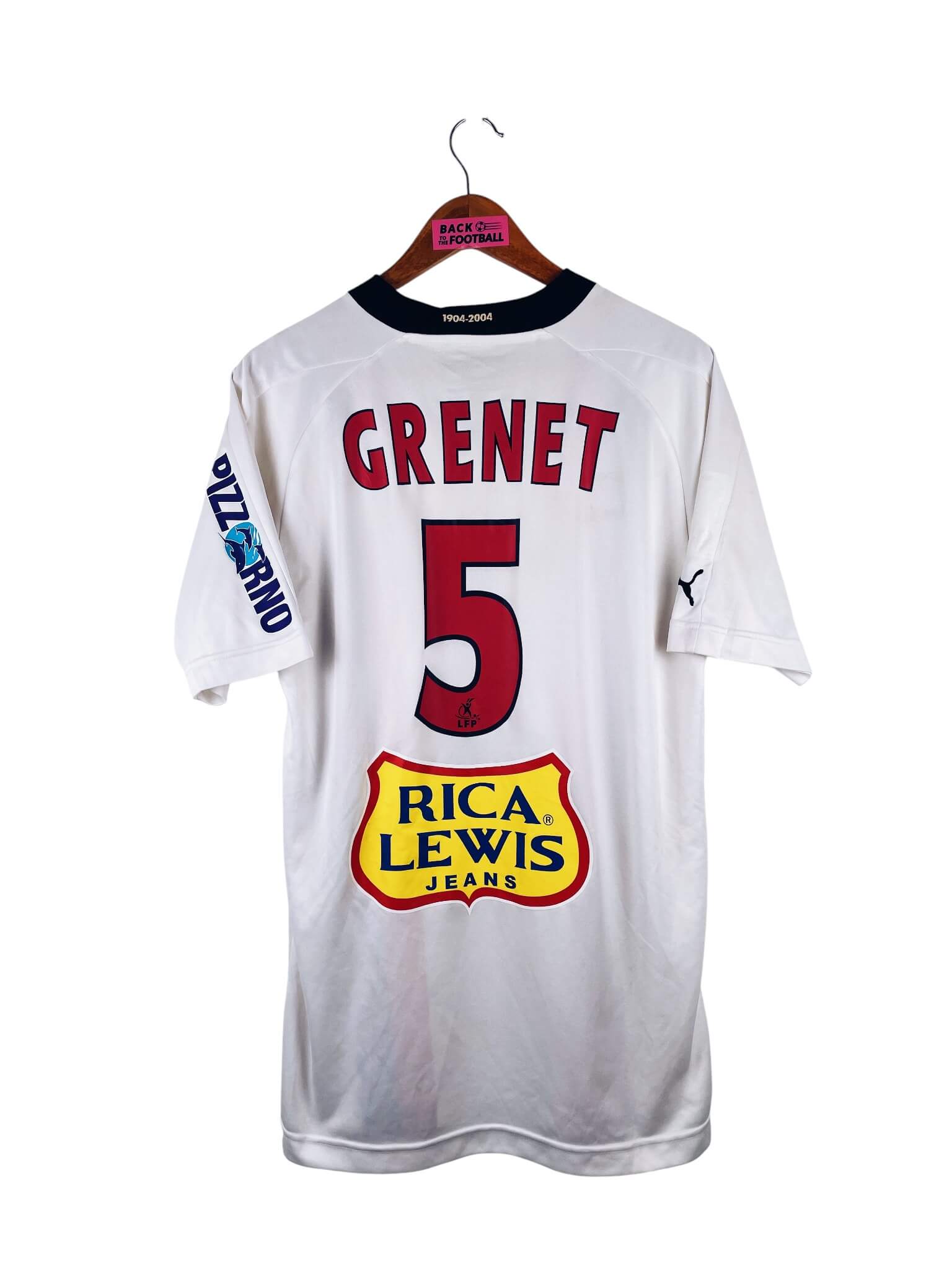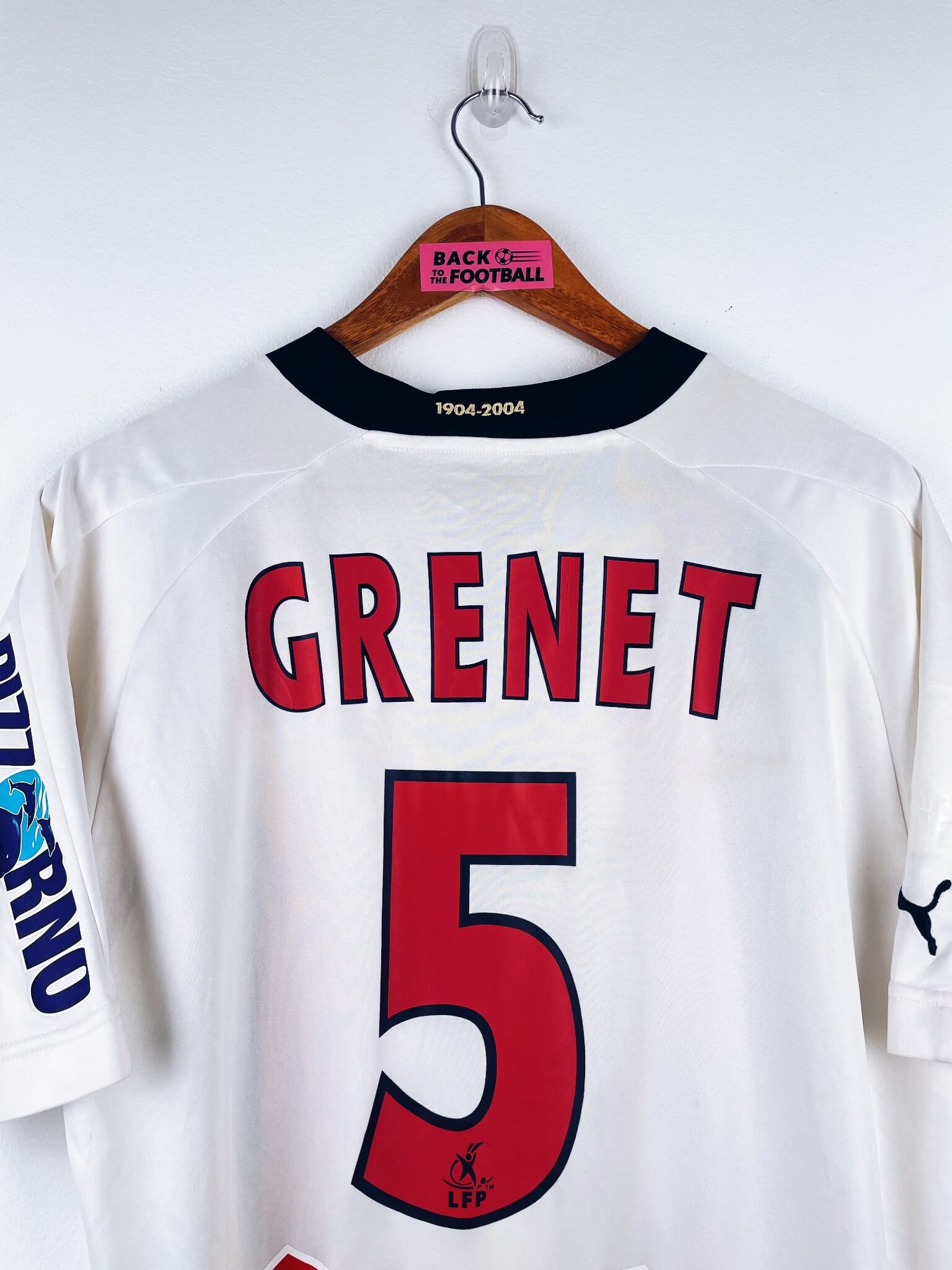 Le maillot : maillot vintage extérieur OGC Nice 2004/2005 porté (match worn) par Grenet #5 : sponsors additionnels, patch LFP et flocage officiels. L’écusson et le logo Puma sont brodés, les sponsors et Grenet #5 sont floqués, le patch LFP est thermocollé. Maillot récupéré via la collection du joueur. Très beau maillot rétro de Nice !