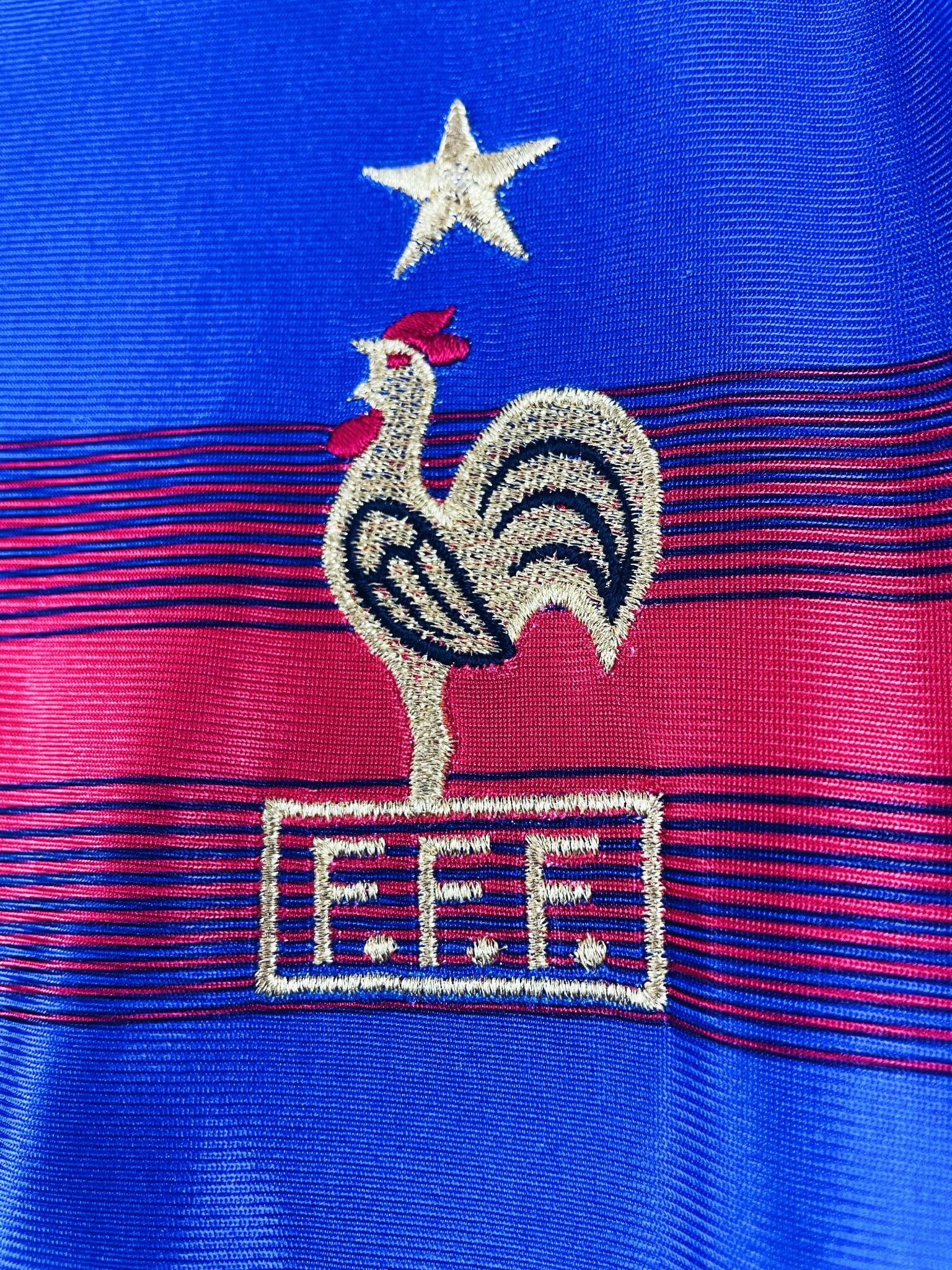 Tu connais la finale de la Coupe du Monde 1998 par coeur? Tu regardes les compilations des contrôles de Zidane sur Youtube? Tu penses souvent au poteau de Gignac? Puis tu penses au second poteau Pavard et ça va mieux? T’espères avoir une 3ème étoile? Alors tu devrais trouver ton bonheur parmi nos maillots de foot vintage de l’équipe de France. Et si t’as des pépites à vendre, on peut aussi racheter ton maillot collector des Bleus.