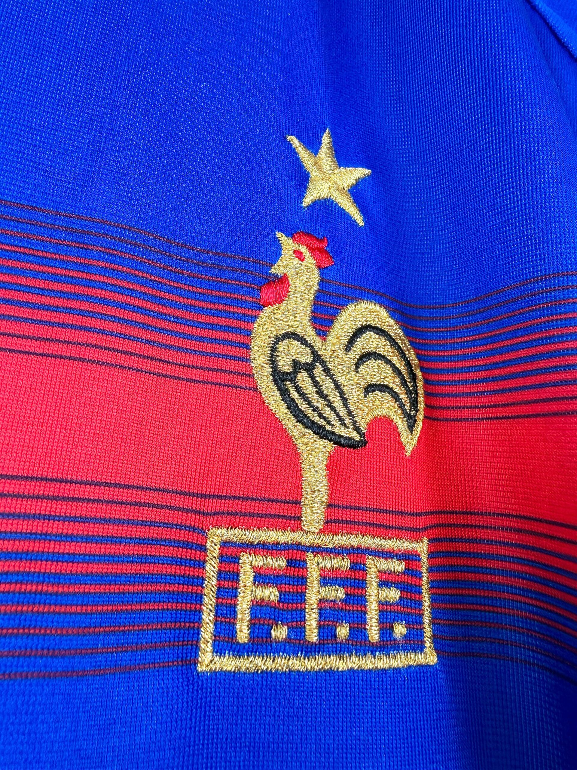 Tu connais la finale de la Coupe du Monde 1998 par coeur? Tu regardes les compilations des contrôles de Zidane sur Youtube? Tu penses souvent au poteau de Gignac? Puis tu penses au second poteau Pavard et ça va mieux? T’espères avoir une 3ème étoile? Alors tu devrais trouver ton bonheur parmi nos maillots de foot vintage de l’équipe de France. Et si t’as des pépites à vendre, on peut aussi racheter ton maillot collector des Bleus.