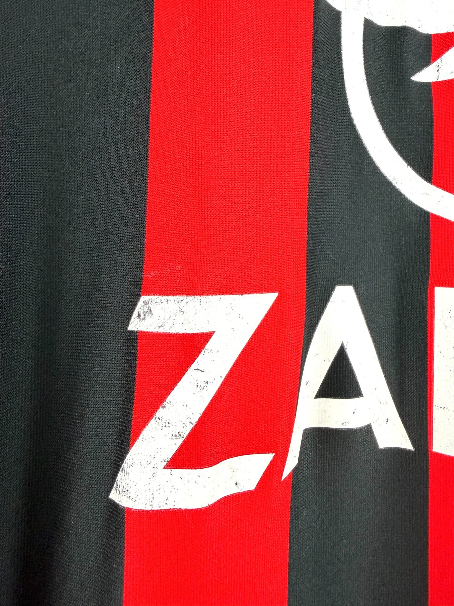 Tu trouves que San Siro est le plus beau stade du monde, surtout pendant le derby della Madonnina contre l’Inter? Tu penses encore au grand Milan de Capello? Ou celui d’Ancelotti? Tu as déjà regardé plusieurs fois la finale de Ligue des Champions 2007? T’as les larmes aux yeux devant les highlights de Kaká sur Youtube? Alors tu devrais trouver ton bonheur parmi nos maillots de foot vintage de l’AC Milan. Et si t’as des pépites à vendre, on peut aussi racheter ton maillot collector des Rossoneri.